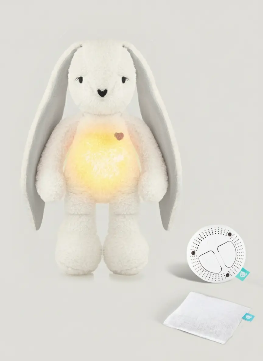 - Dźwięki wspierające zasypianie: Miś emituje trzy rodzaje szumów (biały, brązowy – szum deszczu oraz różowy – bicie serca), które maskują hałasy z otoczenia i przypominają maluszkowi bezpieczne środowisko z brzuszka mamy.